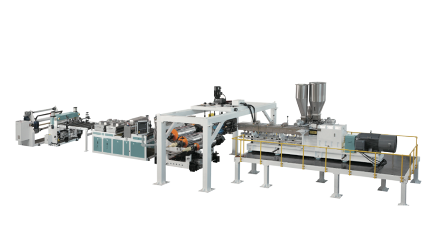 A complete sheet extrusion line often integrates a twin screw extruder with die, calendaring, cooling, haul-off, and cutting units. It produces sheets for packaging, construction, automotive, and thermoforming. In such lines, stable current ensures consistent melt pressure and sheet thickness, which is vital for high-quality production.